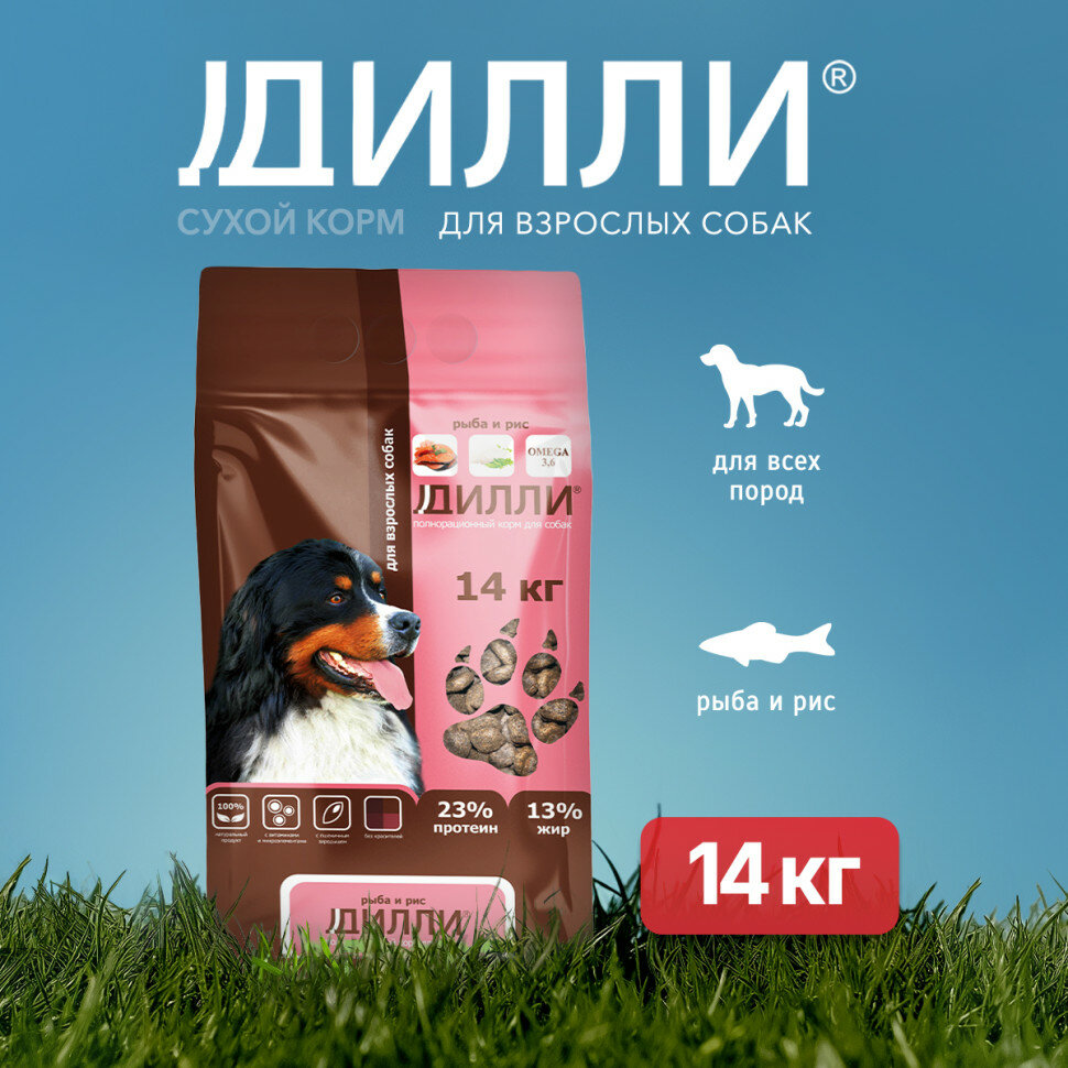Купить Дилли сухой корм для взрослых собак с рыбой и рисом - 14 кг
