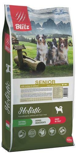 Купить Сухой корм для собак старше 7 лет Blitz Holistic Senior Dog с индейкой и лососем 12 кг.