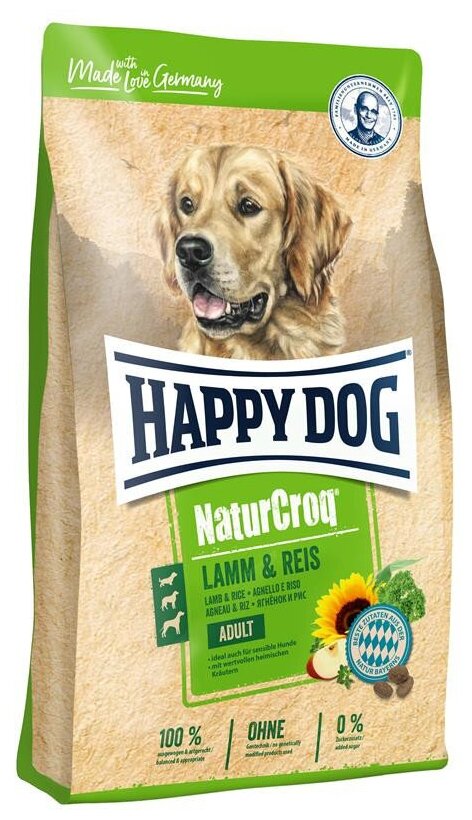 Happy Dog NaturCroq, при чувствительном пищеварении, для здоровья кожи и шерсти, ягненок, с рисом 15 кг