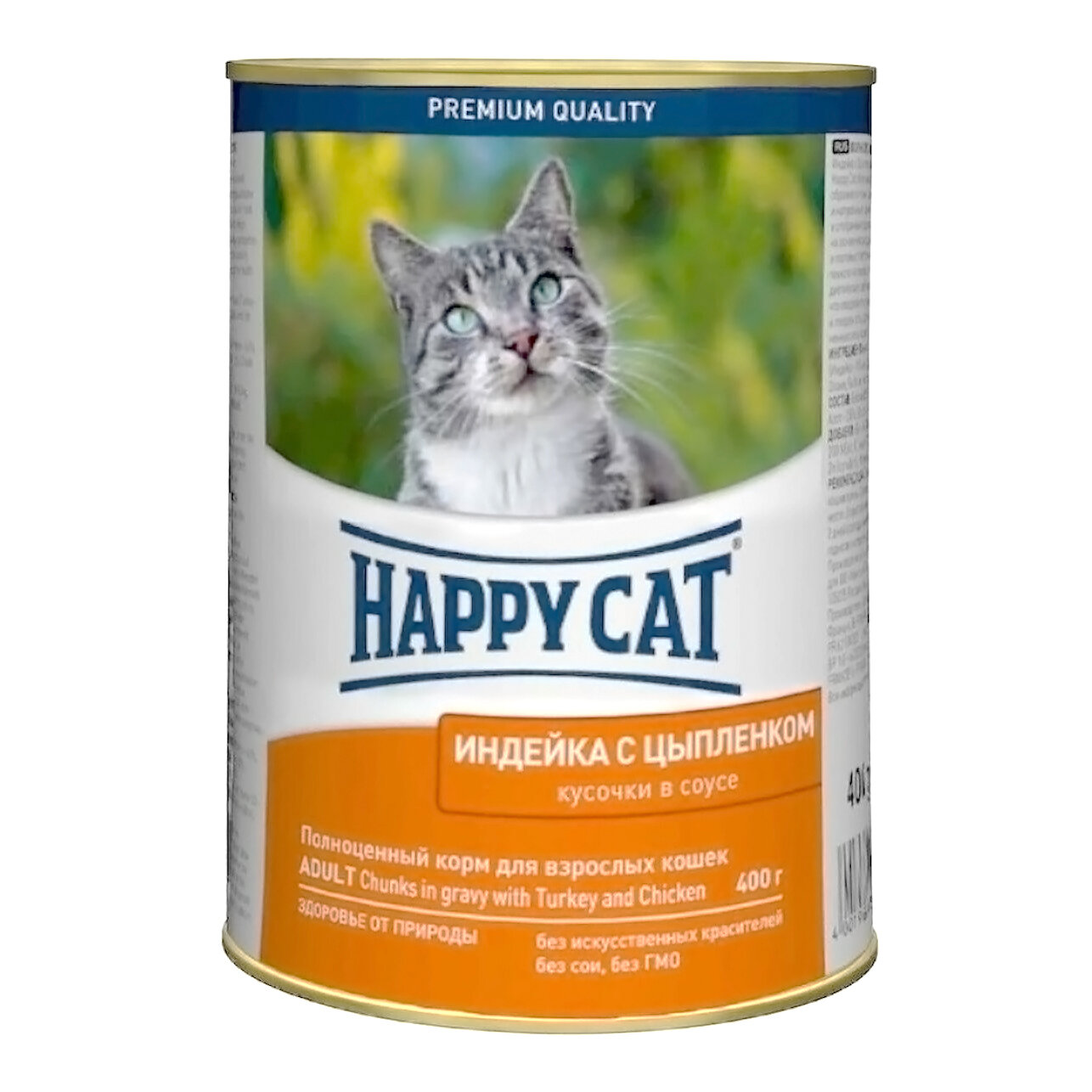Happy Cat консервы для взрослых кошек с индейкой и цыпленком в соусе - 400 г х 12 шт (Россия)