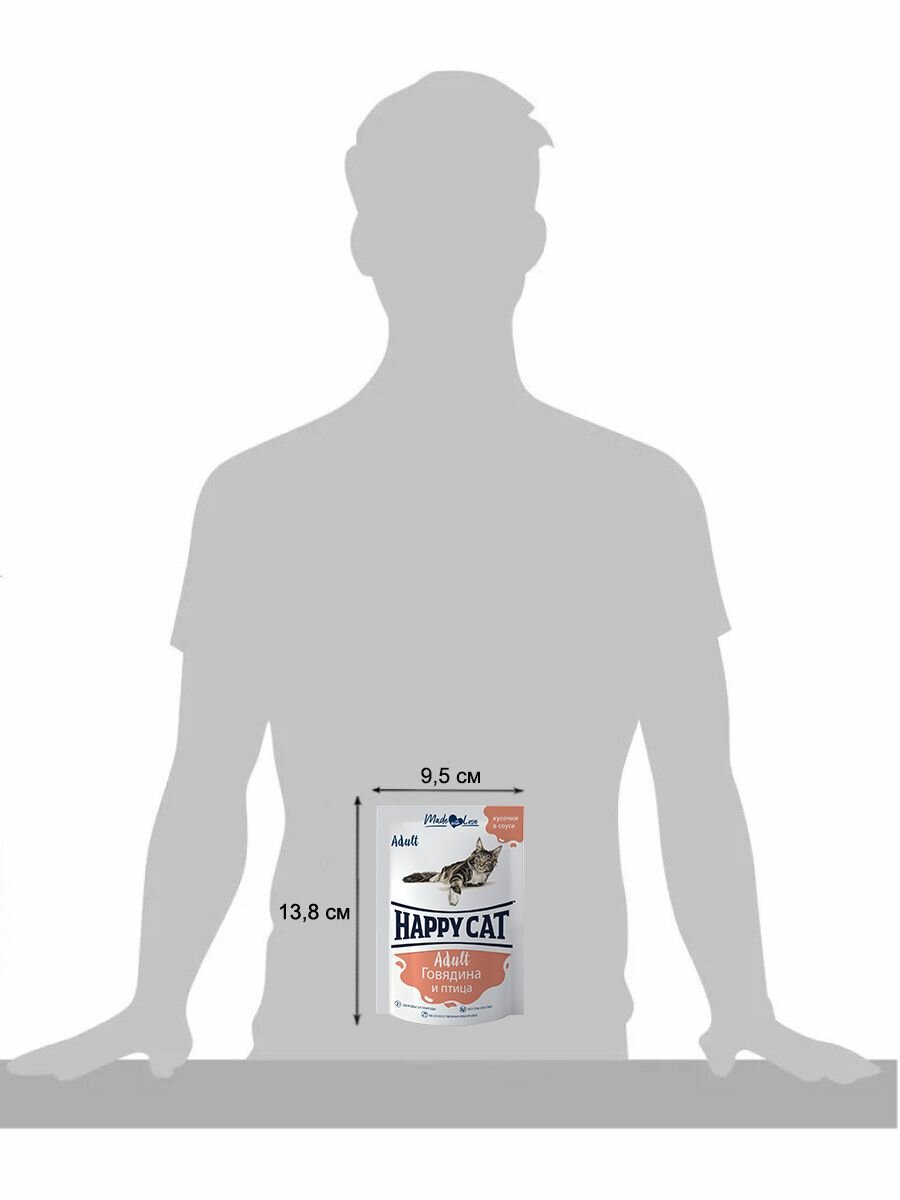 Happy Cat паучи для взрослых стерилизованных кошек и кастрированных котов, с говядиной, кусочки в соусе - 85 г х 24 шт