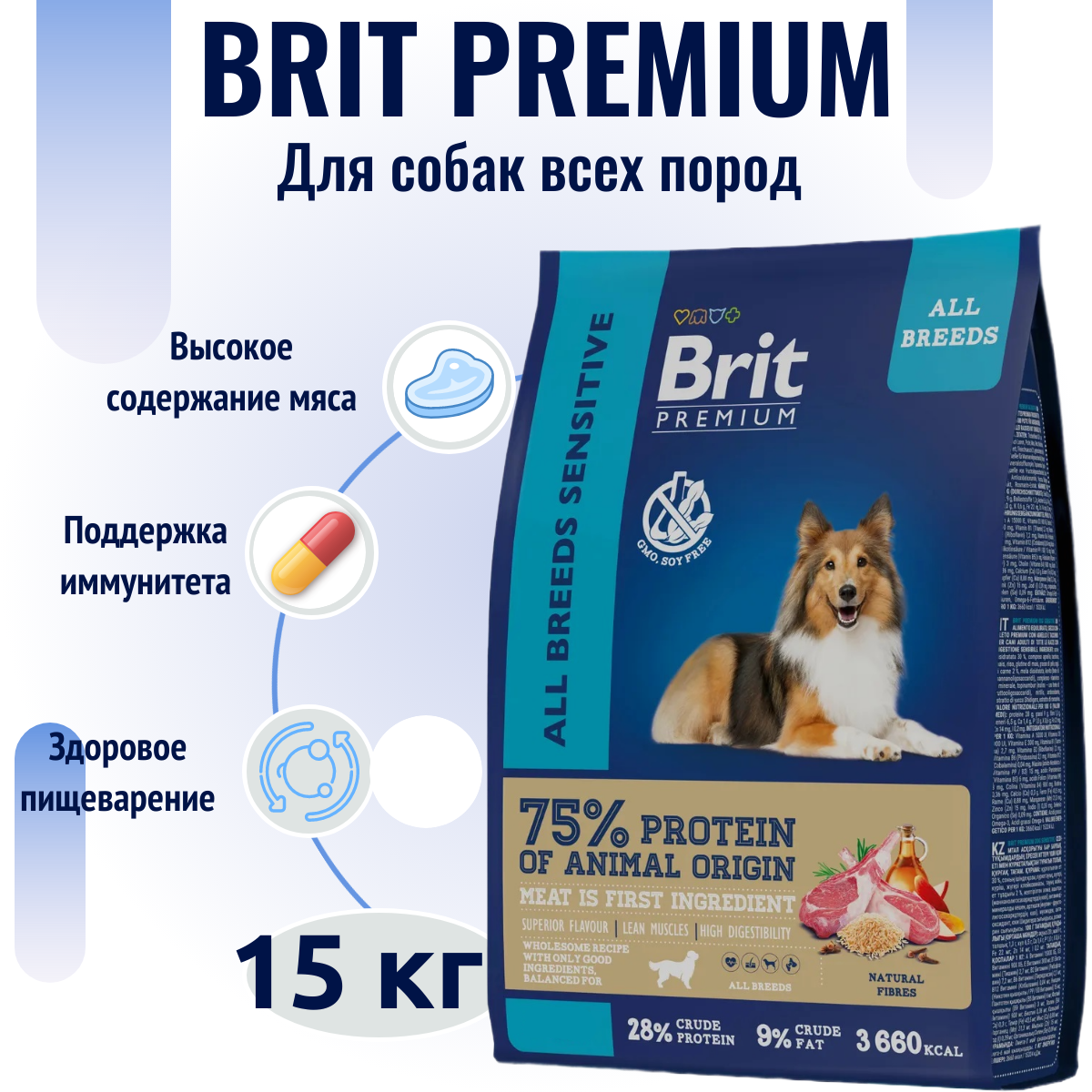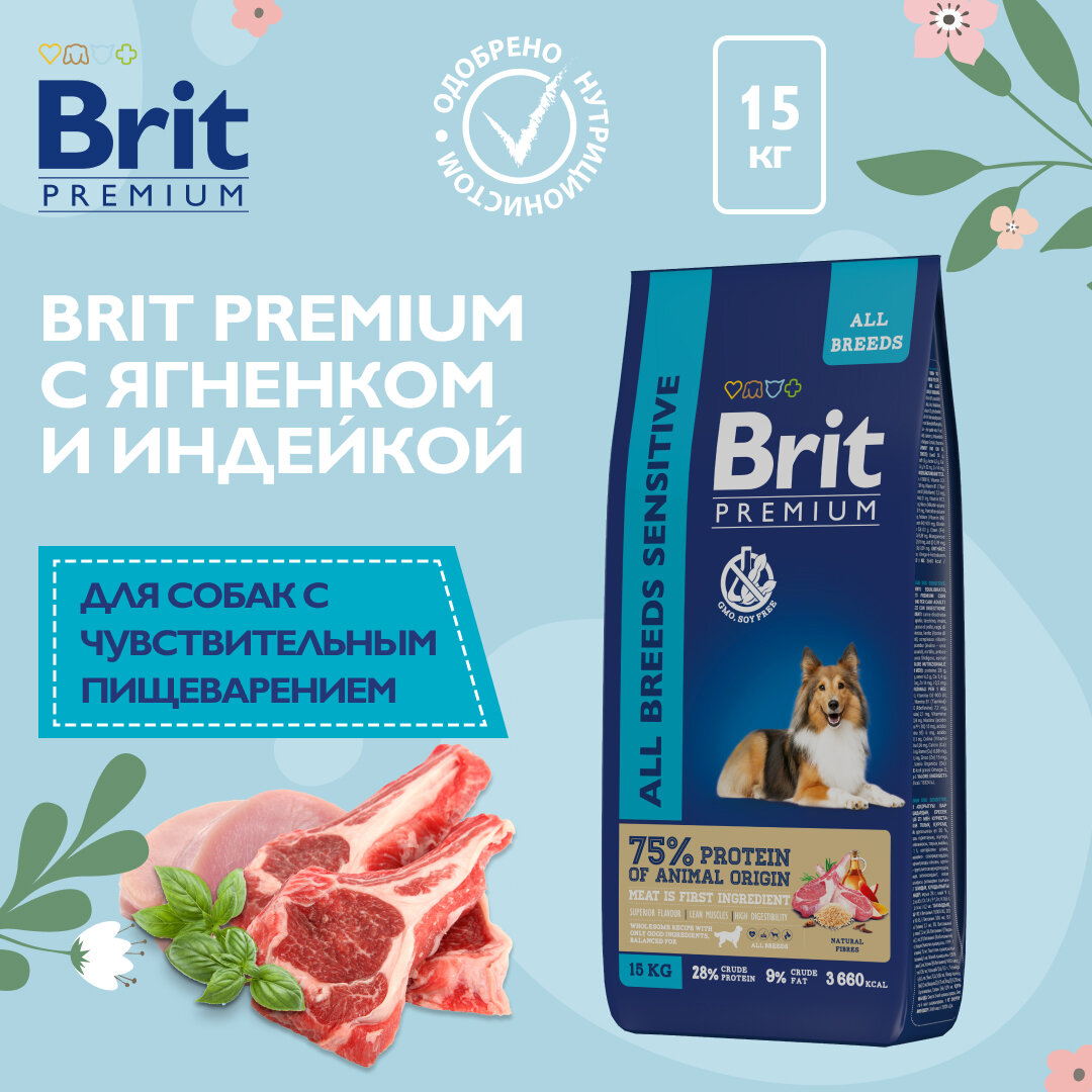Brit Premium Dog Sensitive 15кг ягненок и индейка (чувствительное пищеварение) сухой корм для собак всех пород