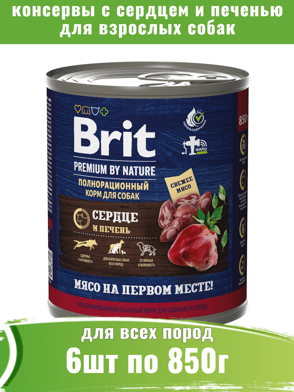 Корм Brit Premium by Nature (консерв.) для собак, сердце и печень, 850 г x 6 шт
