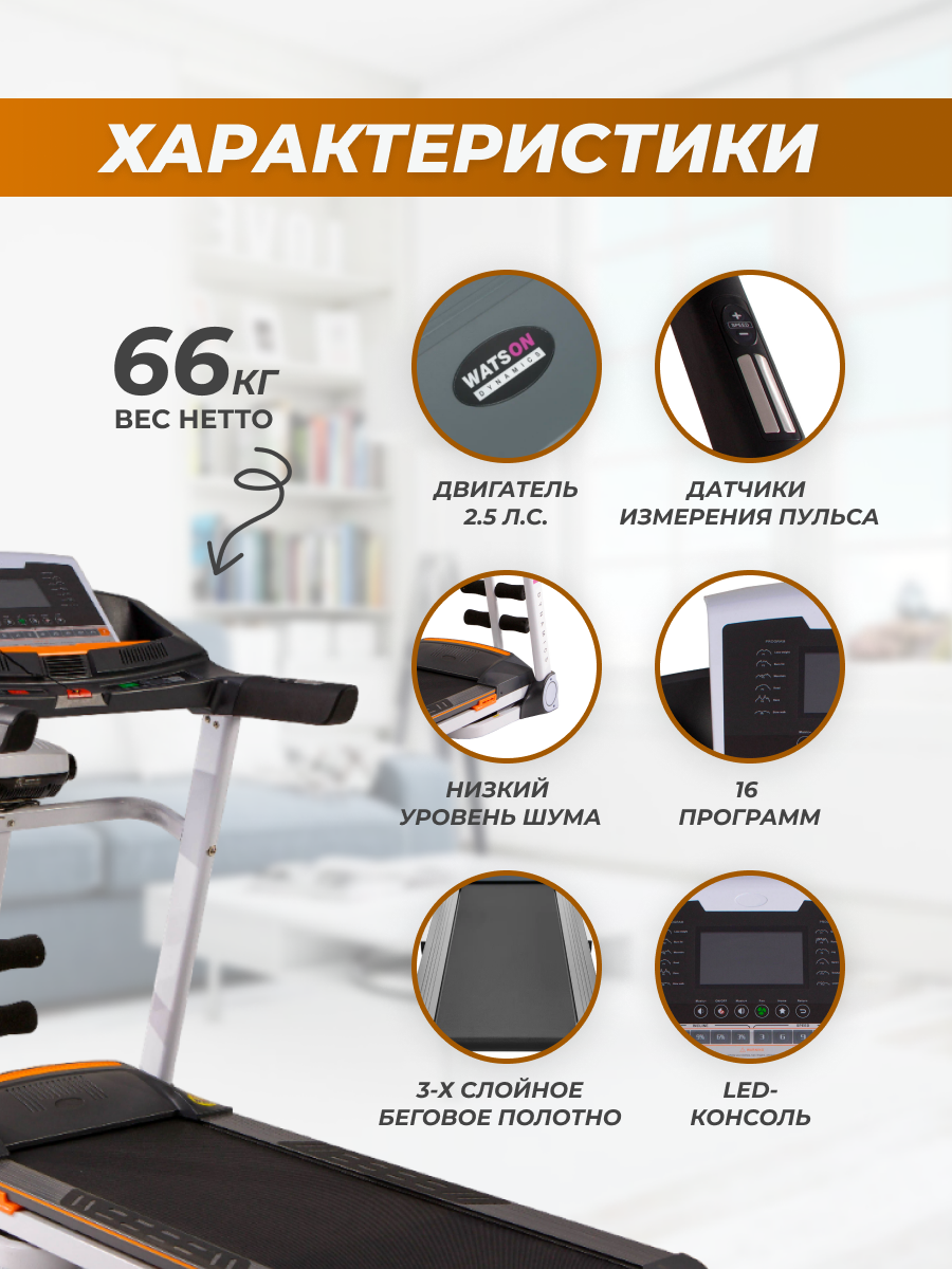 Беговая дорожка электрическая складная для дома Watson Dynamics Pro 100 максимальный вес 135 кг. интересное: