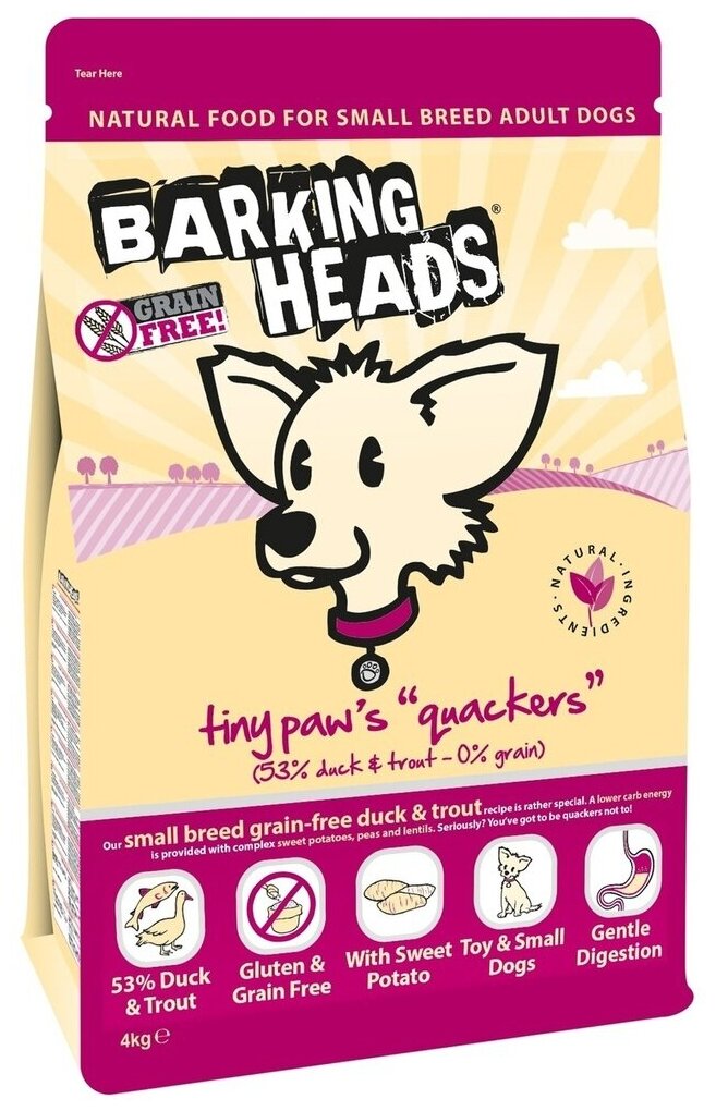 Купить BARKING HEADS Восхитительная утка беззерновой для взрослых собак маленьких пород с уткой и бататом (4 кг)