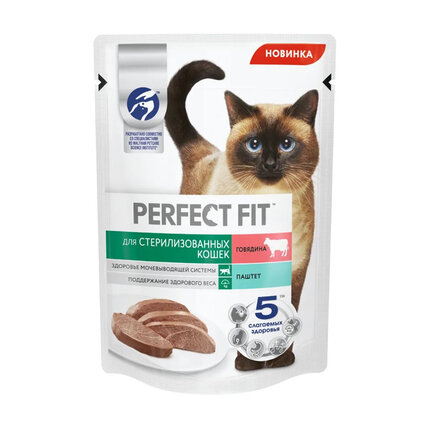 Влажный корм для стерилизованных кошек Perfect Fit Sterilised, с говядиной 75 г интересное: