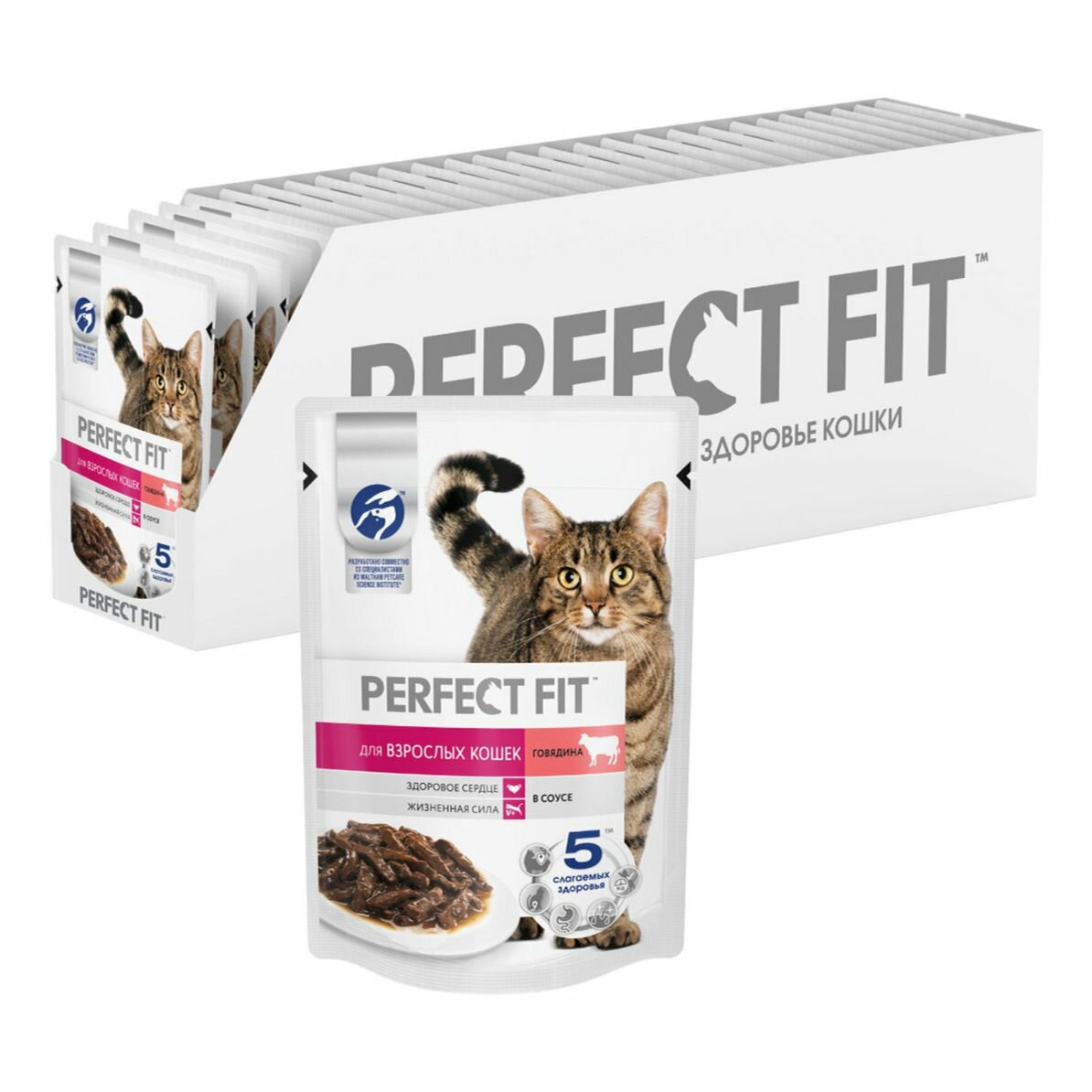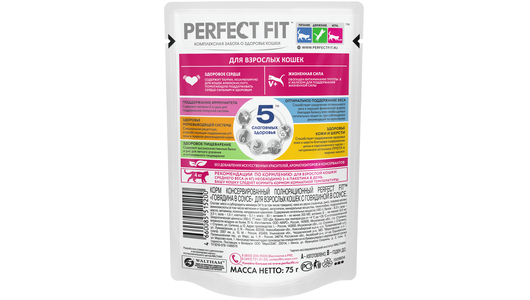 Купить PERFECT FIT для взрослых кошек с говядиной в соусе (75 гр х 28 шт)
