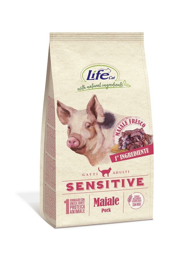 Купить [16111] Корм Lifecat Adult Sensitive Pork 400г со свежей постной свиной вырезкой, профилактика ЖКТ для кошек 1/6, 16111