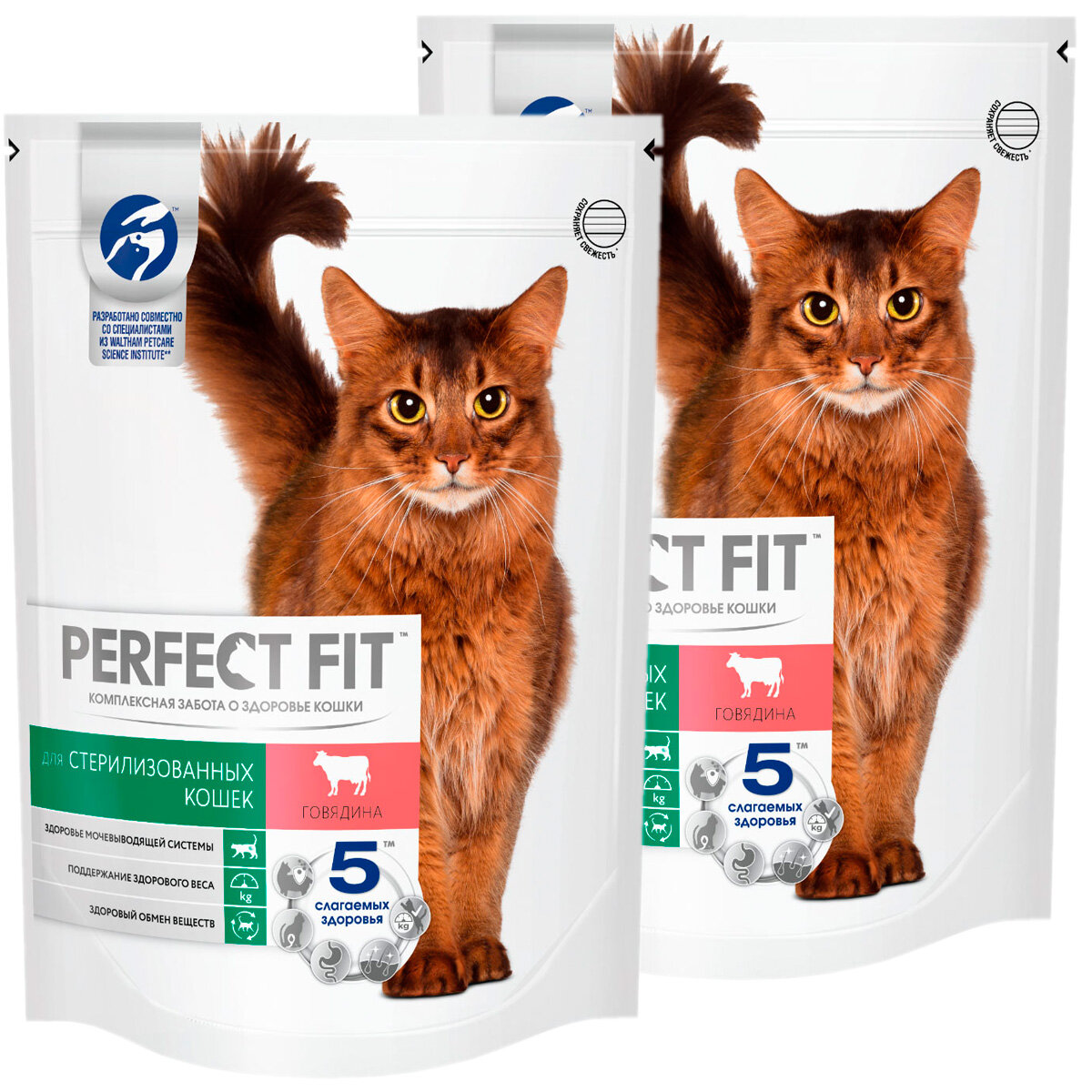 Купить PERFECT FIT STERILE для взрослых кастрированных котов и стерилизованных кошек с говядиной (0,65 + 0,65 кг)