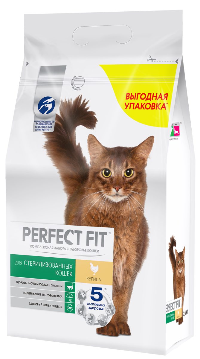 Perfect Fit корм для взрослых стерилизованных кошек всех пород, курица 2,5 кг