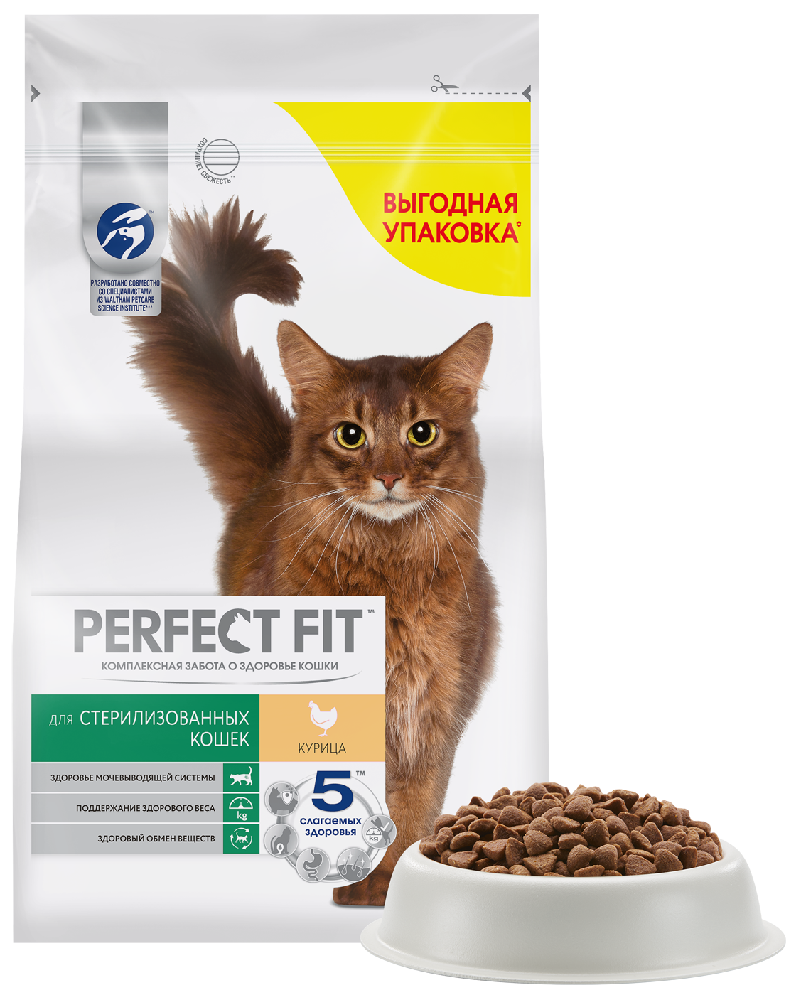 Купить PERFECT FIT STERILE для взрослых кастрированных котов и стерилизованных кошек с курицей (2,5 кг х 3 шт)