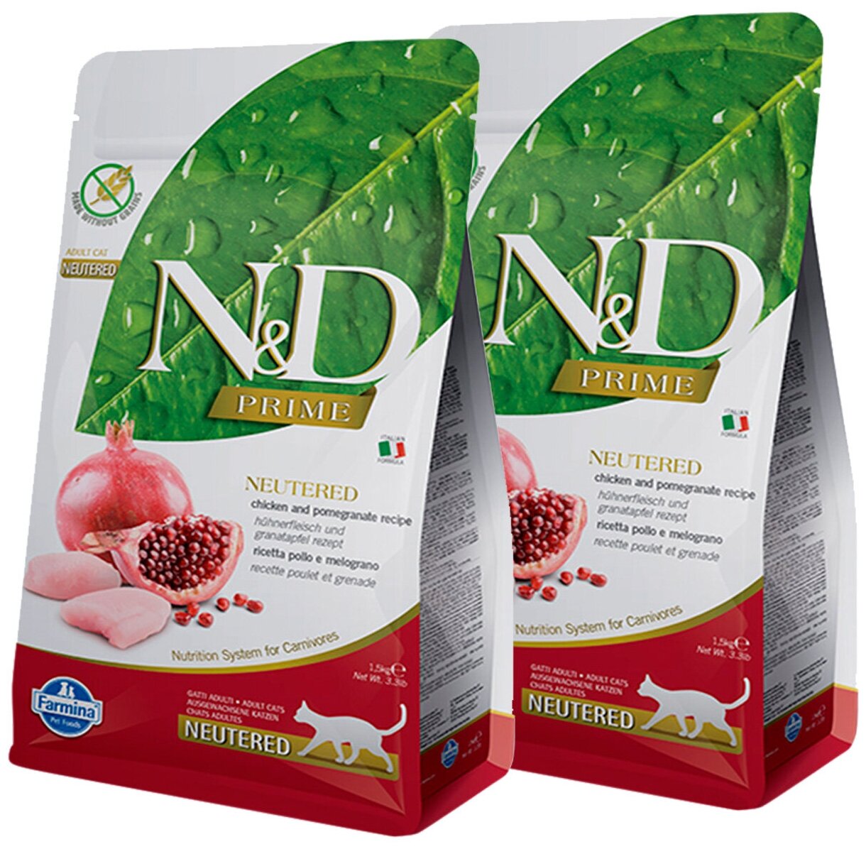 Купить FARMINA CAT N&D PRIME NEUTERED CHICKEN & POMEGRANATE беззерновой для кастрированных котов и стерилизованных кошек с курицей и гранатом (10 + 10 кг)