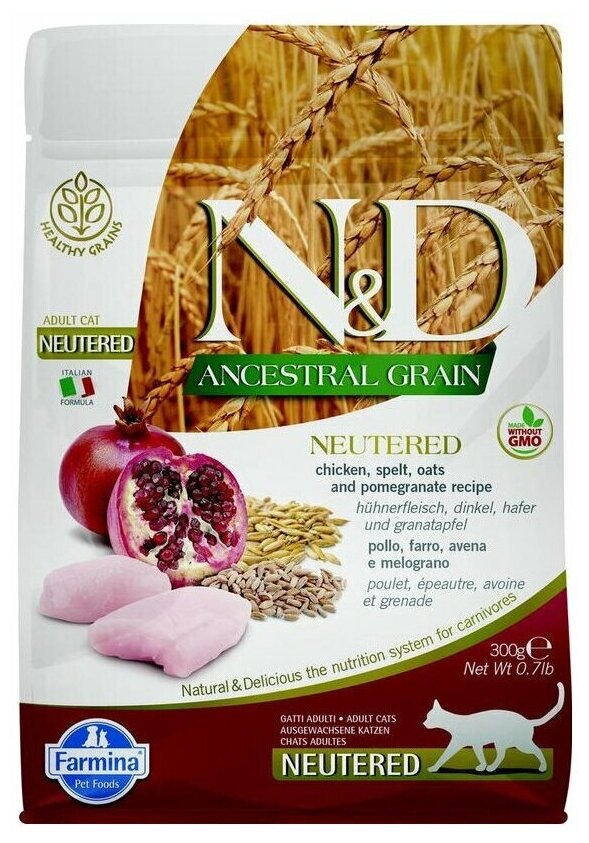 FARMINA CAT N&D ANCESTRAL GRAIN NEUTERED CHICKEN & POMEGRANATE низкозерновой для взрослых кастрированных котов и стерилизованных кошек с курицей и гранатом (0,3 кг)