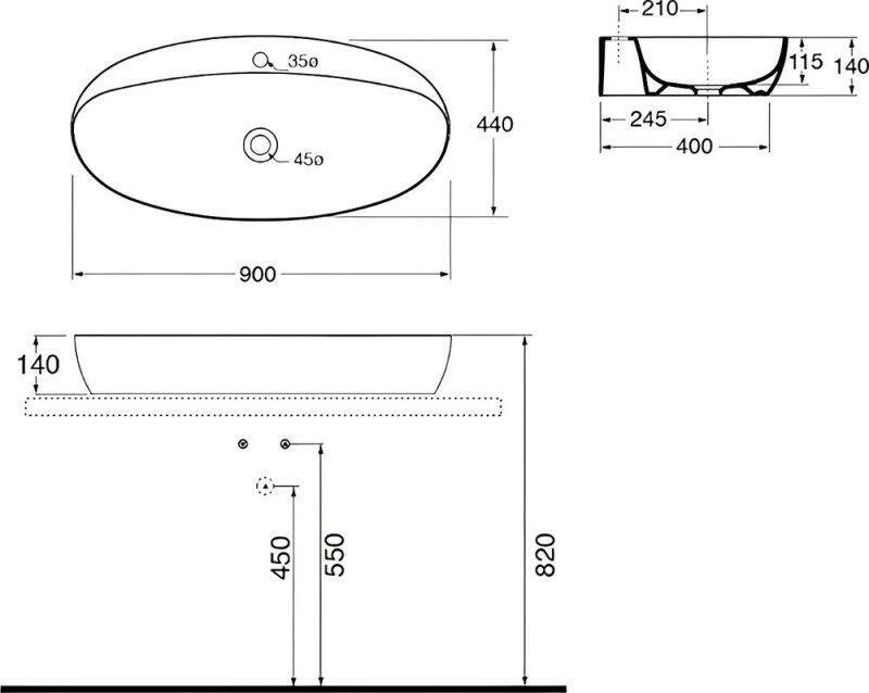 Раковина Azzurra Nativo 34 овальная, без отверстия под смеситель
