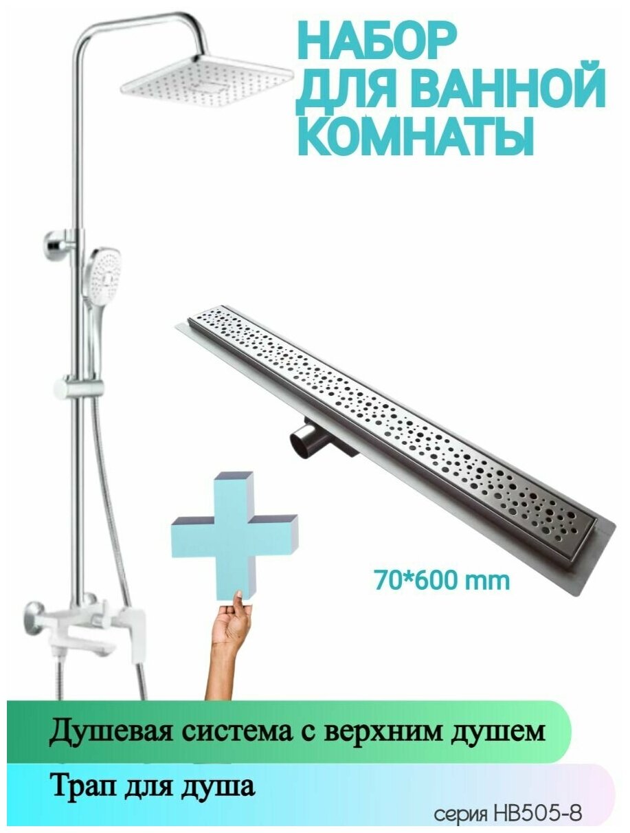 Душевая система и Трап для душа напольный (лоток 70/600 mm) HAIBA HB24505-8-HB92600, материал латунь, покрытие хром/белый. интересное:
