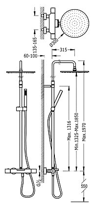 | Дополнительная информация | высота стойки для душа: 1970 мм; диаметр верхнего душа: 300 мм |