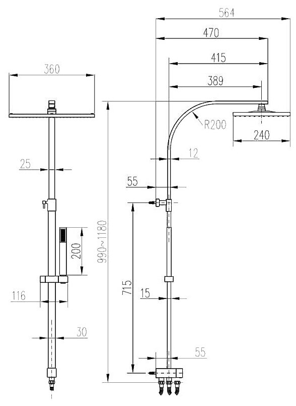 | Дополнительная информация | высота стойки для душа: 1180 мм; длина верхнего душа: 240 мм; ширина верхнего душа: 360 мм |