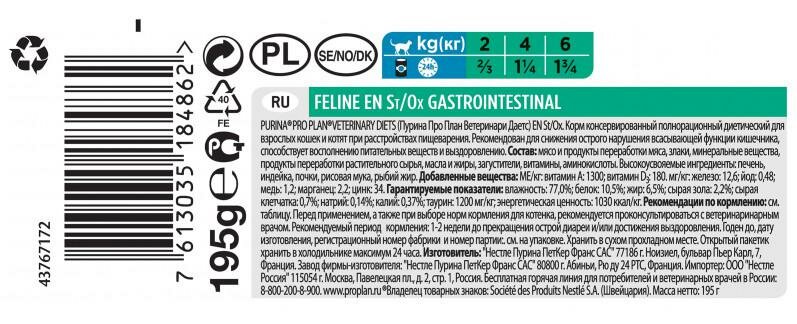 Влажный корм для кошек и котят Purina Pro Plan Veterinary Diets EN St/Ox Gastrointestinal, при расстройствах пищеварения, 12 шт. х 195 г
