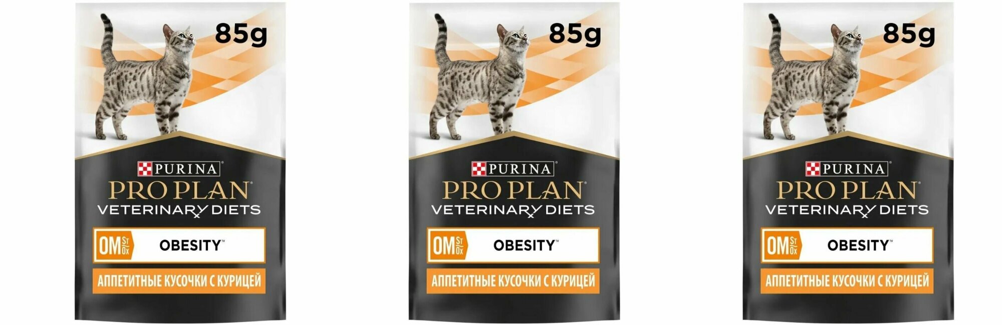 Купить Влажный корм для кошек Purina Pro Plan Veterinary Diets OM St/Ox OBESITY MANAGEMENT, для снижения избыточной массы тела, с курицей, 3 шт. х 85 г
