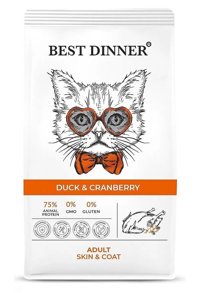 Best Dinner Adult Cat 1,5кг утка и клюква сухой для кошек интересное:
