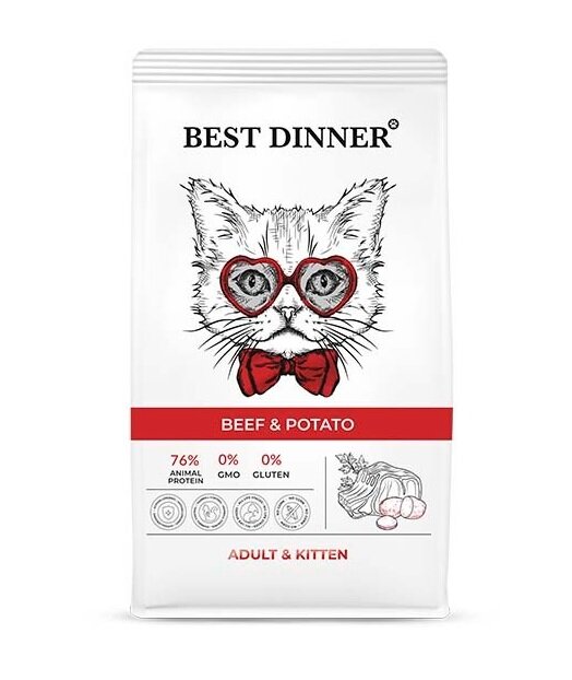 Best Dinner Cat Adult & Kitten 10кг х 2шт говядина с картофелем для кошек и котят с 1 мес интересное: