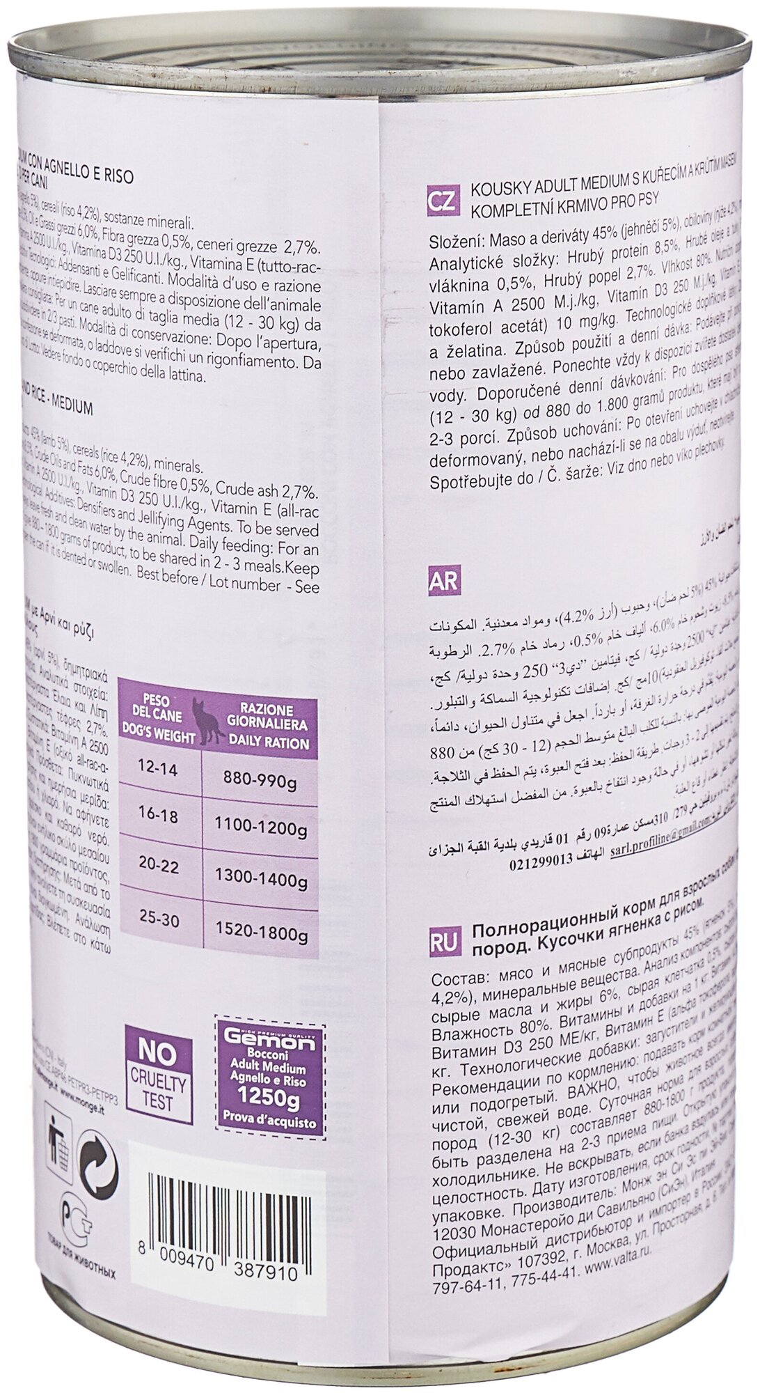 Gemon Dog Medium консервы для собак средних пород кусочки ягненка с рисом 1250г ( 4 шт в упаковке)
