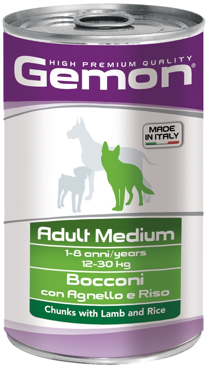 GEMON DOG ADULT MEDIUM для взрослых собак средних пород с кусочками ягненка и рис банка 1250 гр х 12 шт