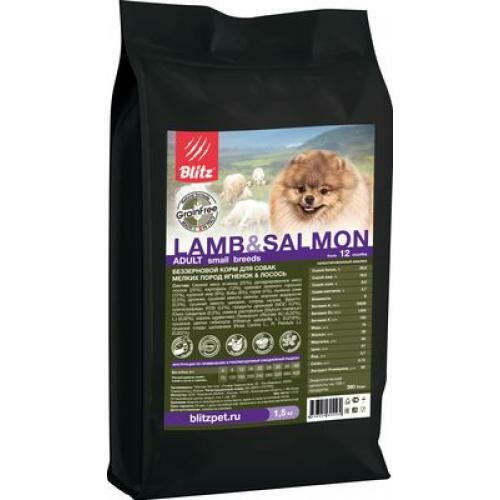 Сухой беззерновой корм для взрослых собак мелких пород Blitz Holistic Adult Small Breed Lamb&Salmon с ягненком и лососем 1,5 кг. интересное: