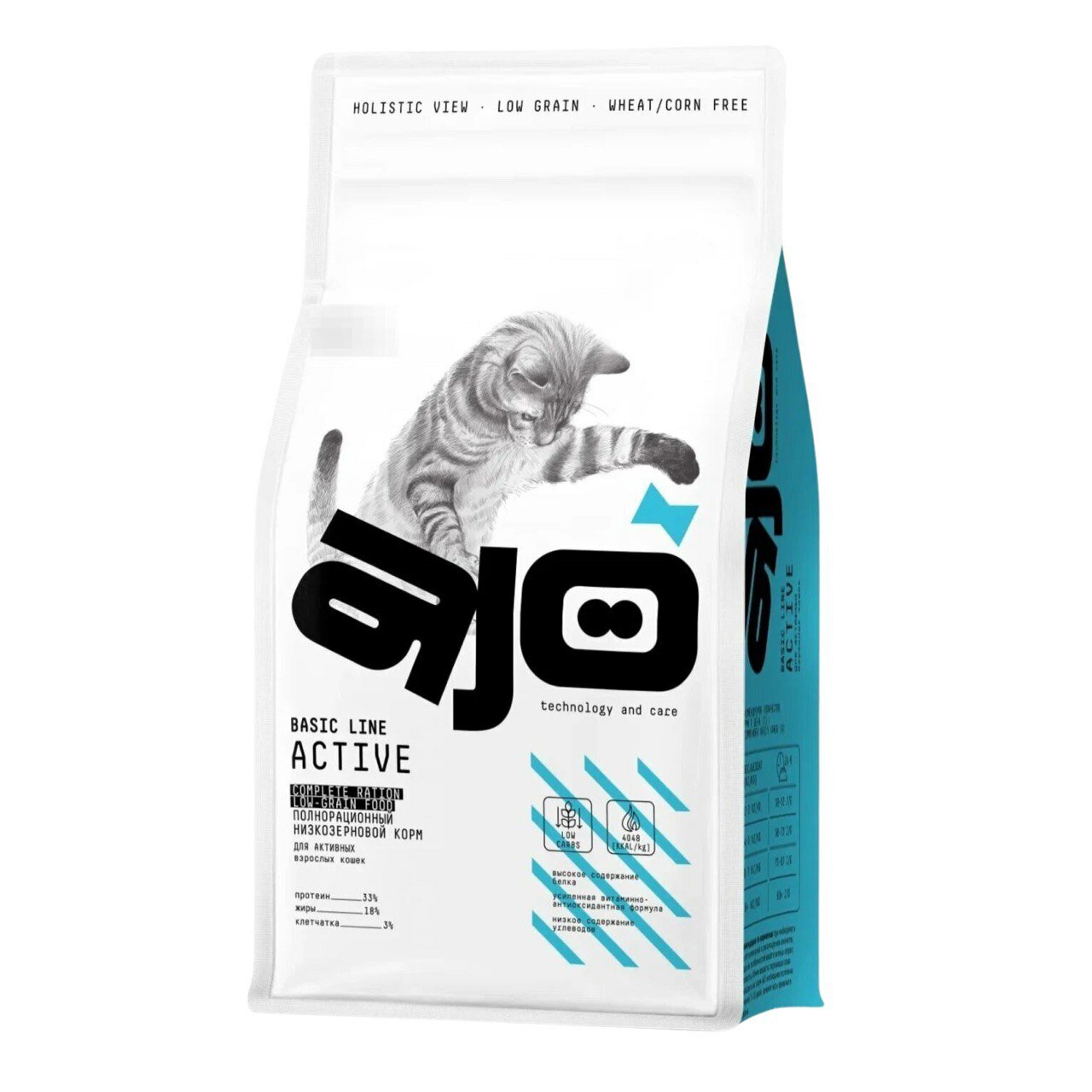 AJO Аctive корм низкозерновой для активных кошек 10кг