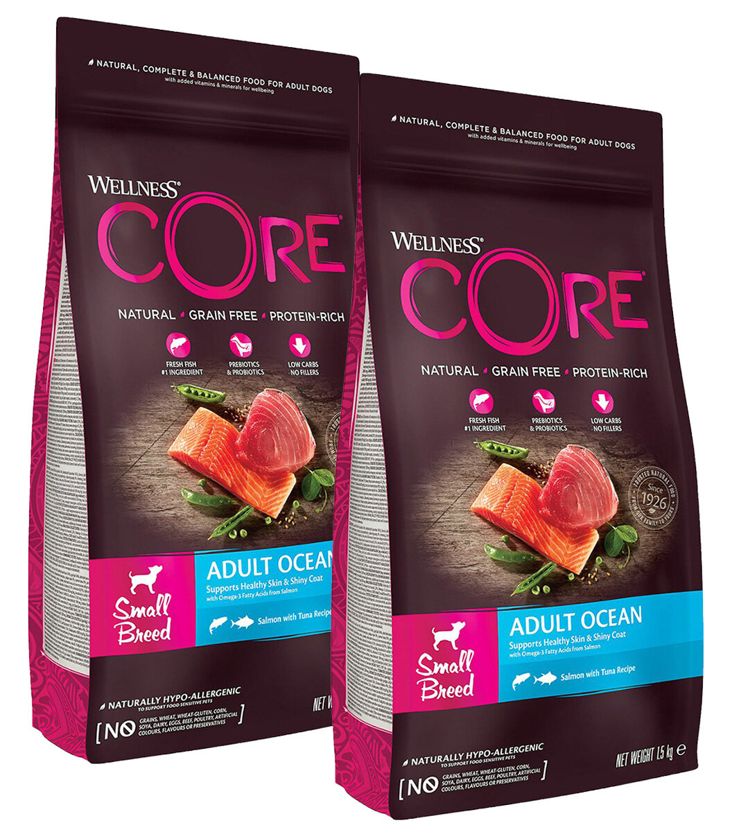 Купить CORE OCEAN DOG ADULT SMALL BREED беззерновой для взрослых собак маленьких пород с лососем (1,5 + 1,5 кг)