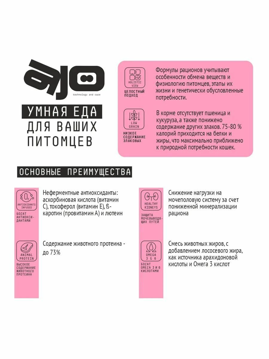 Корм для кошек сухой AJO / Айо Cat Sterile для взрослых стерилизованных животных, гранулы 400г / кошачья еда для ежедневного кормления