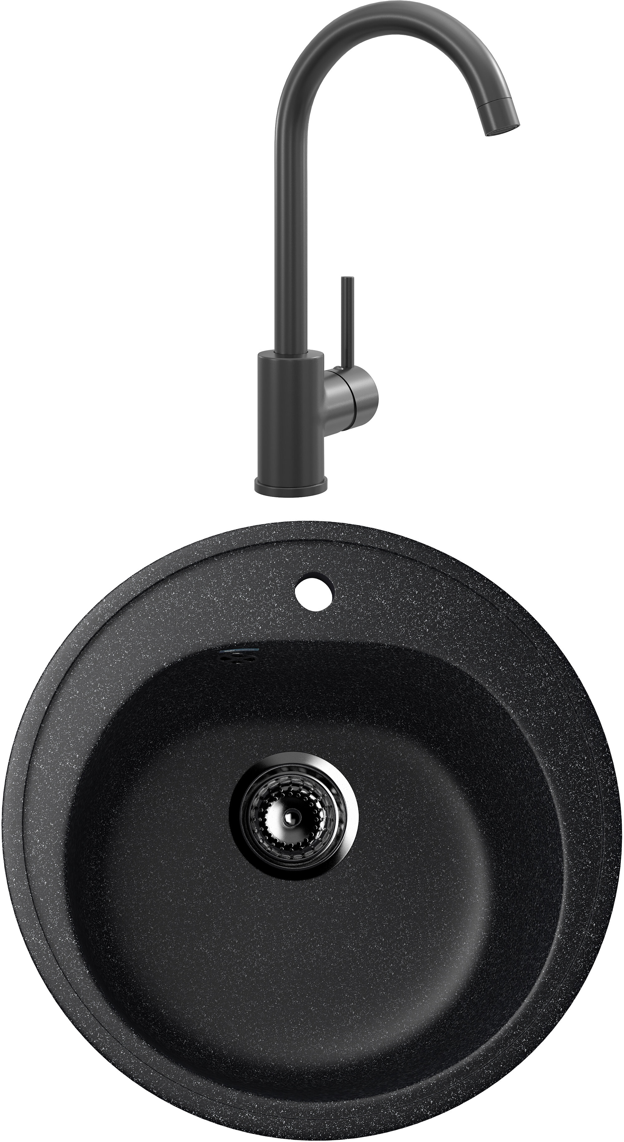 Купить Комплект Мойка кухонная Ulgran U-101-308 черная + Смеситель для кухни Domaci Равенна KS-01b черный