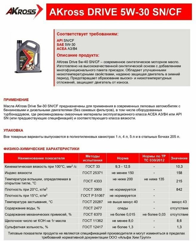 Ниже Вы можете прочитать отзывы на Масло моторное AKross Drive 5W-30 4 л синт., ознакомится с подробными характеристиками, посмотреть интересные обзоры и фотографии на Масло моторное AKross Drive 5W-30 4 л синт..