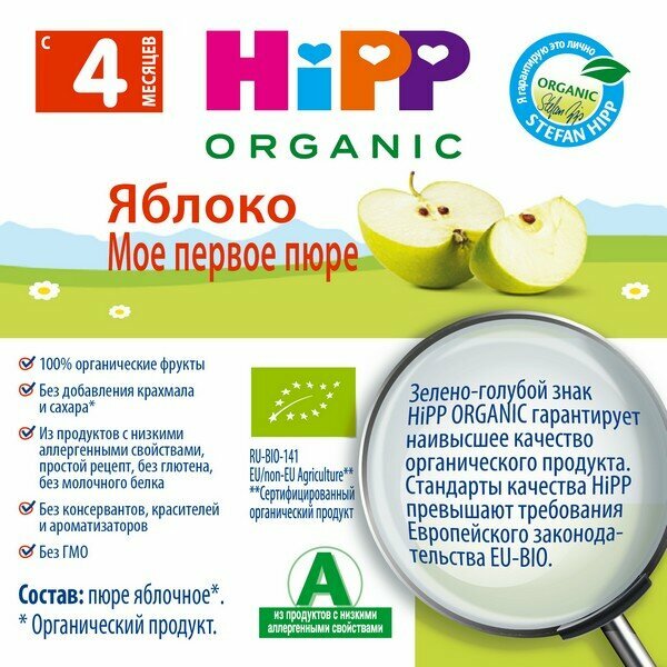 Органическое фруктовое пюре HiPP "Яблоко, моё первое пюре", 80 гр./1шт интересное: