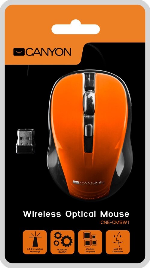 Мышь беспроводная Canyon CNE-CMSW1, 800/1000/1200dpi, Оранжевый CNE-CMSW1O