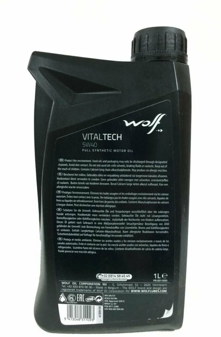 Купить Wolf Масло Моторное Vitaltech 5W40 1L Bmw Longlife-01, Mb 229.3, Psa B71 2296, Vw 505.00, Acea A3/B4, Api Sn/Cf