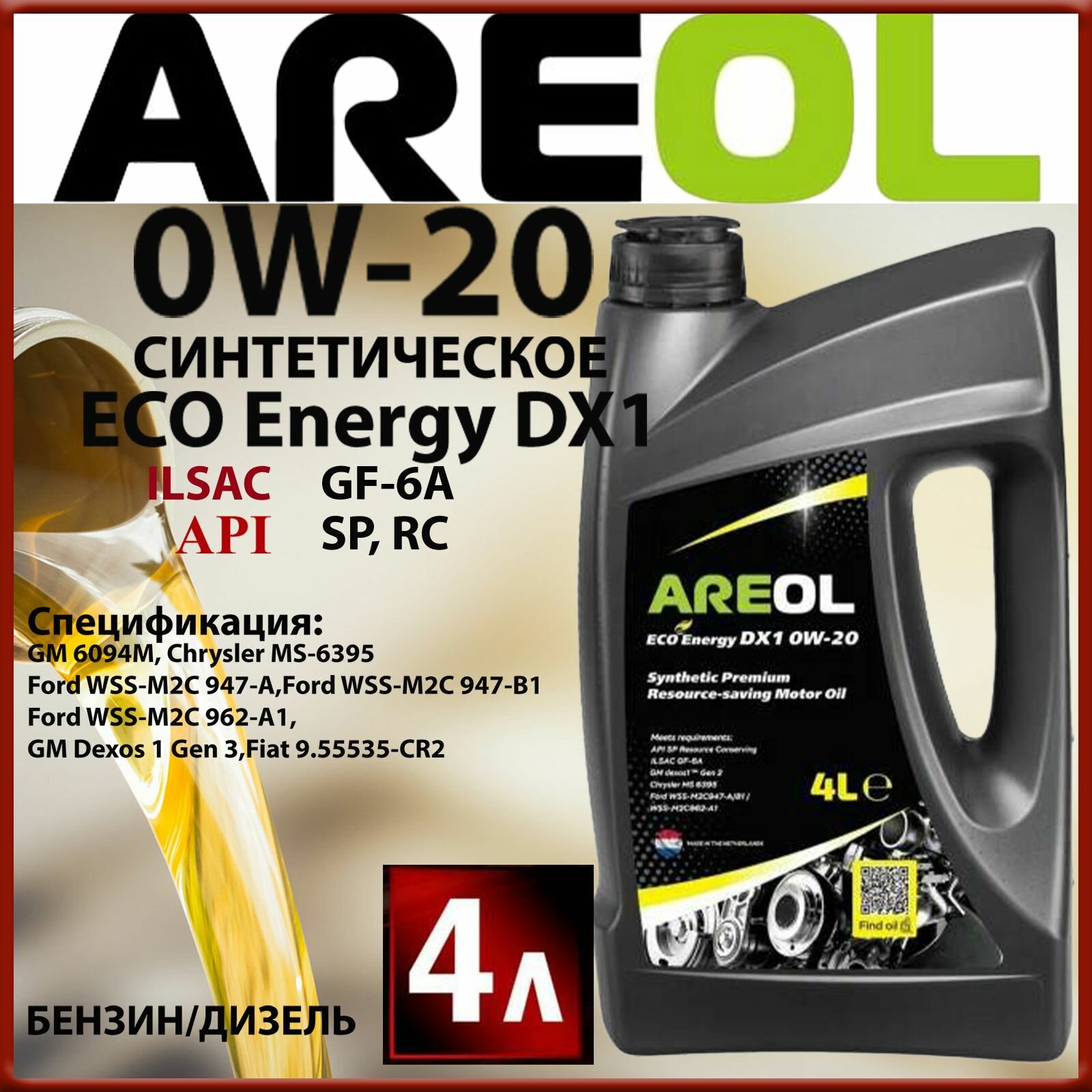 AREOL 0W20AR067 AREOL ECO Energy DX1 0W20 (4L)_масо моторное! синт.\API SP RC, ILSAC GF-6A, GM Dexos 1 Gen 2