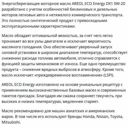 СохранитьСинтетическое моторное масло Areol Eco Energy DX1 0W-20, 4 л интересное: