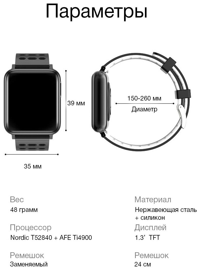 | Функции мониторинга | измерение уровня кислорода в крови / ЭКГ / тонометр / постоянное измерение пульса / мониторинг сна / мониторинг физической активности / акселерометр / мониторинг калорий |