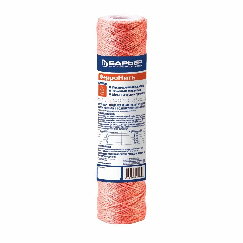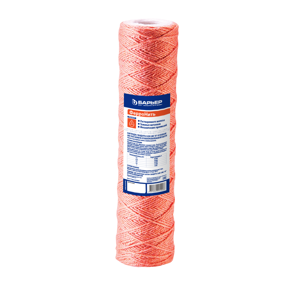 Картридж для магистрального фильтра БАРЬЕР ФерроНить 10 мкм 10SL, защищает от металлов, Р142Р01