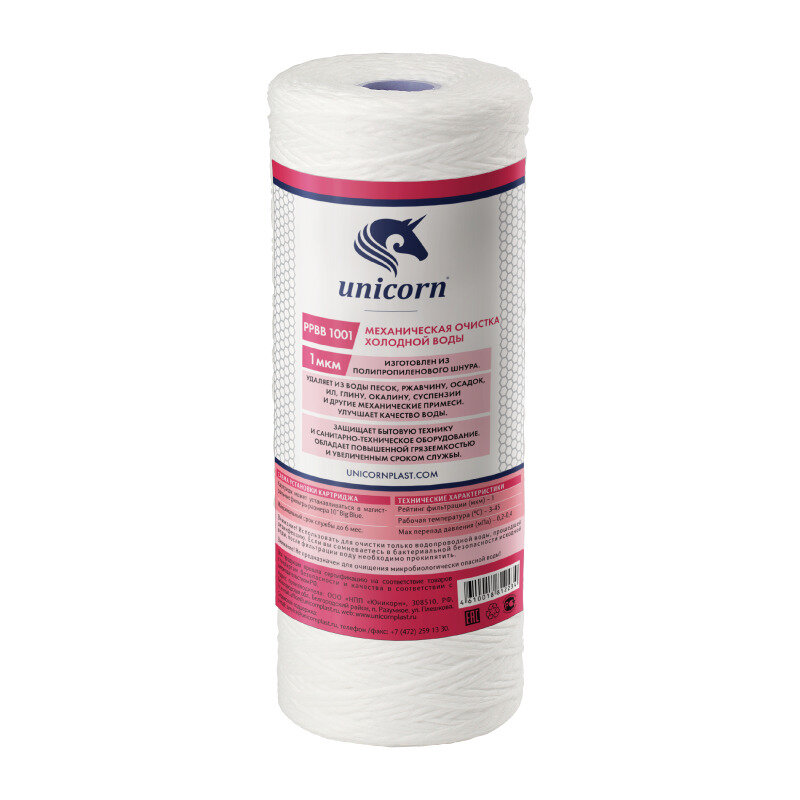 Механический картридж Unicorn на холодную воду, 10' BB, 1 мкм, PS BB 1001 541199 .