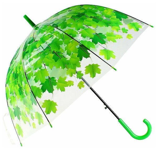 NoBrand Прозрачный зонт-трость "Зеленые листья" интересное: