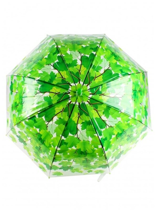 Зонт трость женский Прозрачный купол "Листья зеленые", детский, 8 спиц, диаметр купола 80 см