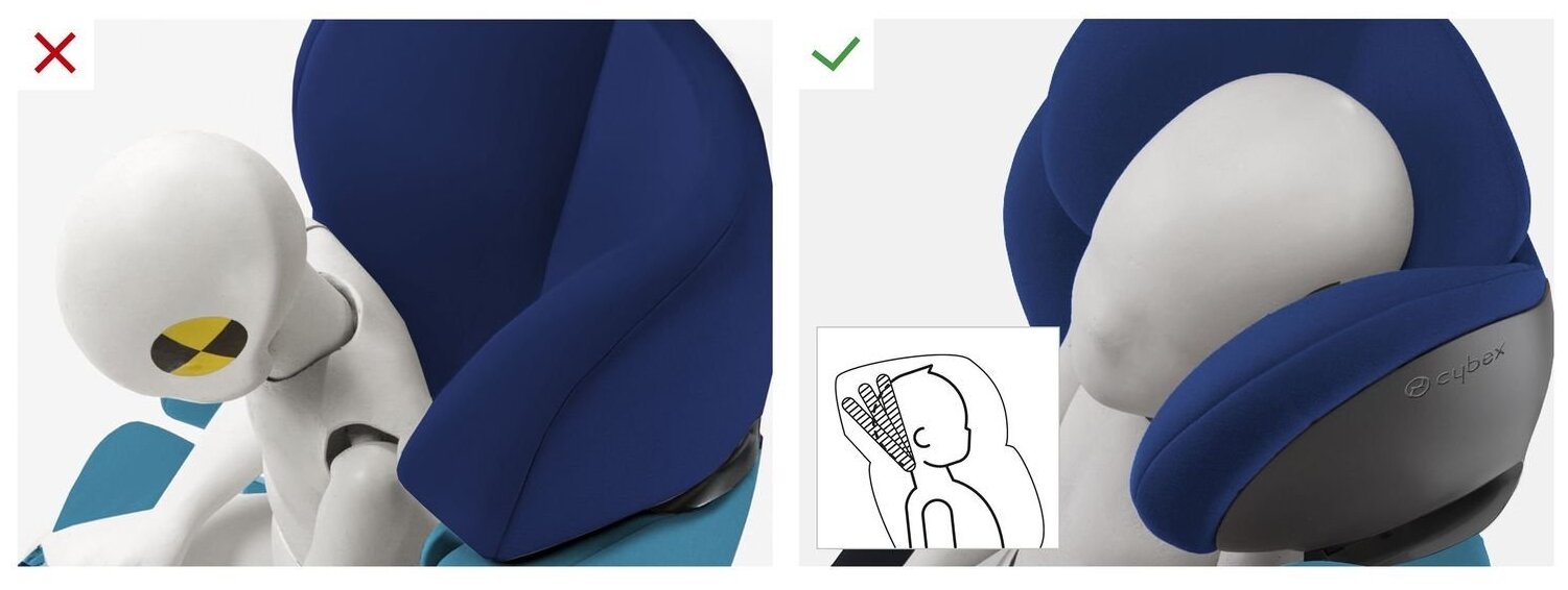 Дополнительные "гасящие" потенциальный удар бустеры сбоку Регулировка спинки Регулировка подголовника не только в вертикальной, но и в горизонтальной плоскости (голова у ребенка не заваливается во сне) |