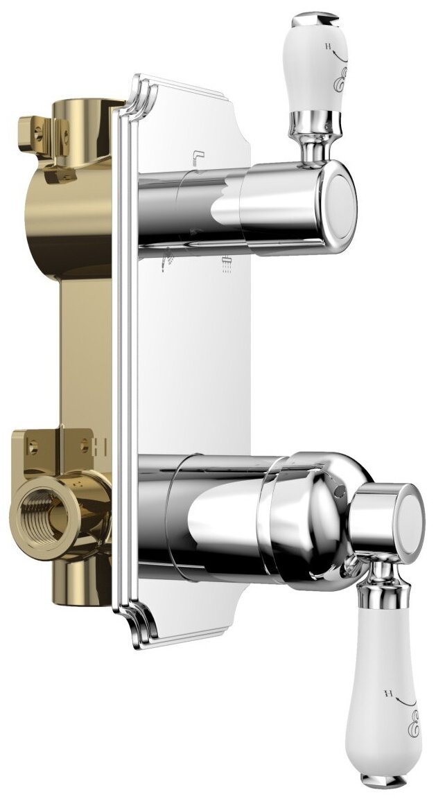 | Комплектация | Корпус-моноблок смесителя 35 мм встраиваемого арт.BD-5435 / панель двойная декоративная ClassicLine арт.PD-15C / подключение душевого шланга арт.WS-6K / рукоять управления арт.HD-86 / душевой набор арт.Set-26 (верхний душ арт.CD-220 / ручная лейка арт.MR-05) кронштейн верхнего душа арт.CR-06 / Душевой шланг 150 см / излив встраиваемый арт.RS-9P |