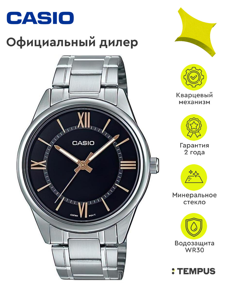 Наручные часы CASIO Collection MTP-V005D-1B5, черный, серебряный