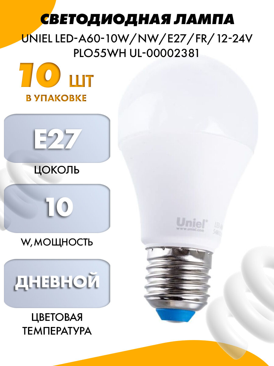 Купить Uniel LED-A60-10W/NW/E27/FR/12-24V PLO55WH Лампа светодиодная. UL-00002381