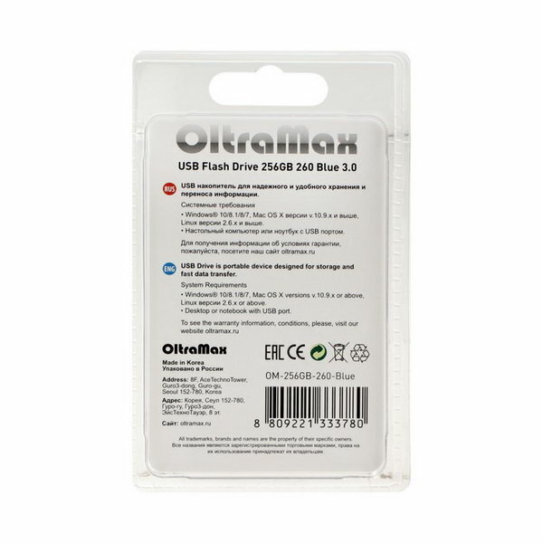 USB флэш-накопитель (OLTRAMAX 256GB 260 Blue 3.0)