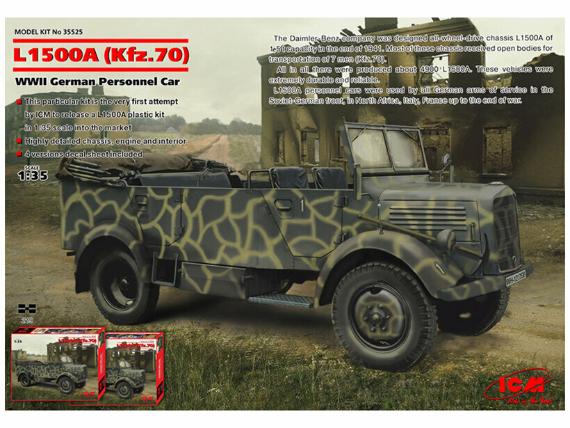 35525 ICM Германский автомобиль Мерседес L1500A( Kfz.70) (1:35) интересное: