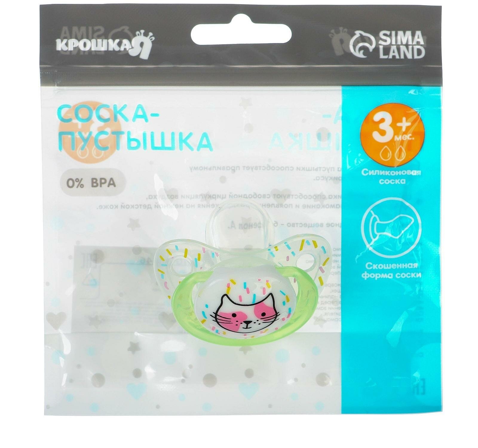 Соска-пустышка ортодонтическая, силикон, от 3 мес., «Кошечка», цвет зеленый интересное:
